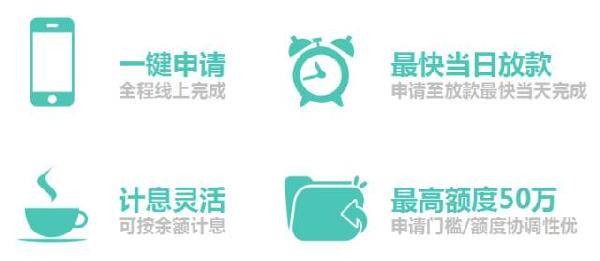 签署完线上贷款合同即完成了申请手续,一旦审核通过,就可以直接从银行卡提取贷款。产品期限分别为6、12、18个月。月息1.5%。