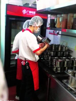 除了注重食材安全外,加强人员管理和培训也是海底捞日常工作的重中之重。“所有新员工上岗前都要在总部统一培训,下店后还要参加食品安全考试。”任涛称,该店还制定了一套健全的考核制度,合格率低于70%的员工将被降级,连续4次不合格将被辞退,考核成绩排在公司倒数15名的则按标准罚款。“我们每天开早会时都会有一次简短的培训,还有每个月会有一次专项培训,比如手部清洗、毛巾分类使用、预防食物中毒等。”