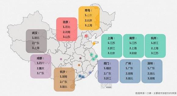 游客对旅游城市假期餐饮消费贡献突出,厦门、长沙、南京、杭州等热门旅游城市游客订单占比接近3成,有效刺激了当地餐 饮消费。但同时受季节性影响较为明显,比如厦门,节日消费主要集中在春节,与温暖的海岛氛围息息相关,而青岛则很明显在国庆和中秋获得了更多的假日消费,主要是因为人们往往喜欢在秋高气爽的季节去海滨城市旅游。