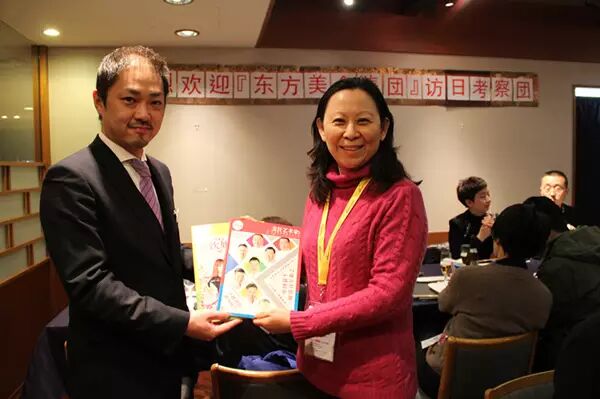 东方美食文化集团总裁郝冬霞女士向日本餐饮大佬赠送礼物