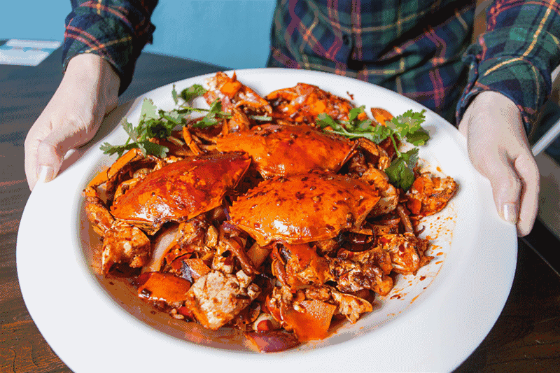 制作这道菜一般会选择外壳较薄的越南小黑蟹或者肉蟹,它们大大的蟹爪肉厚肥美,里面的蟹肉也比较多,吃起来更为过瘾。大闸蟹、梭子蟹还有小只的淡水蟹则不适合用来制作这道菜。