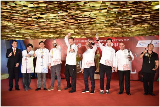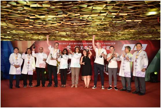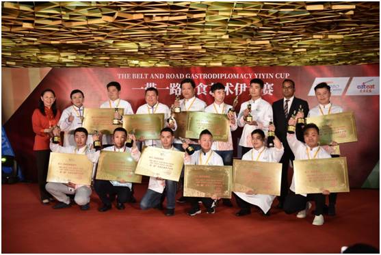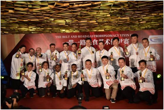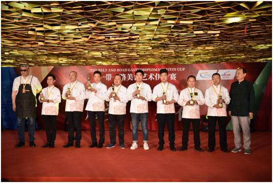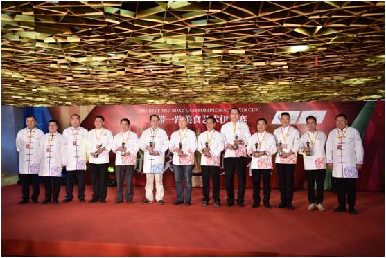 经过两天的激烈角逐,“一带一路”美食交流大会四大赛事圆满结束。5月23日晚,“一带一路”美食带路颁奖晚宴在北京国家体育场鸟巢隆重举行,多个一带一路国家的高级外交官,国际著名的美食家,评论家、实业家和国内知名餐饮企业的大咖参加颁奖大会。会上颁发了“一带一路”美食艺术伊尹赛团体赛金奖、“一带一路”美食艺术伊尹团体赛大奖、大使馆主厨邀请赛伊尹金像奖、“一带一路”美食艺术伊尹赛个人赛金奖、“一带一路”美食艺术伊尹赛个人赛银奖、厨邦超级凉菜大奖赛特金奖及金奖银奖。