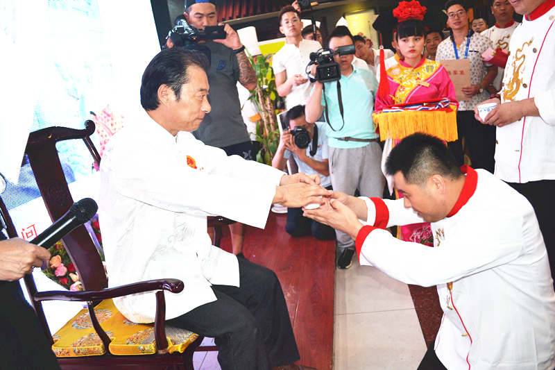 此次活动还举行了中华餐饮文化艺术大师赵慧源先生的收徒仪式,17位新晋弟子举行了隆重的拜师仪式。一日为师终生为父,仪式在各位厨界同仁、各位大师、专家的见证下进行。