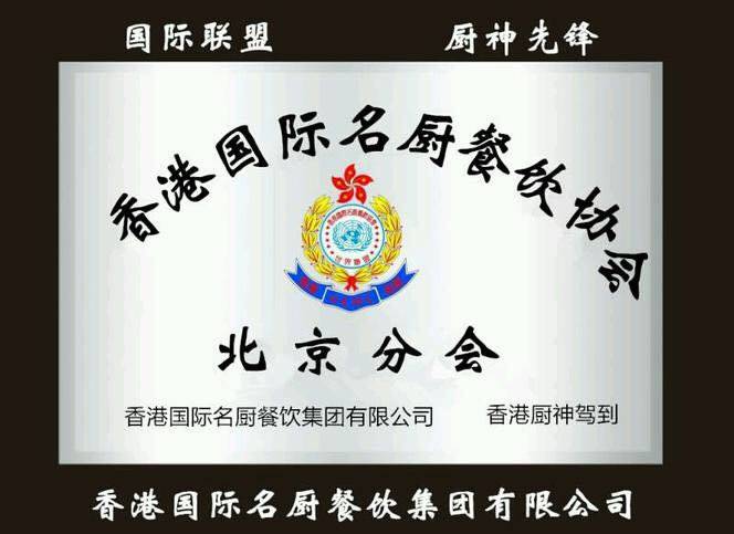 香港国际名厨餐饮协会会长马路林给北京分会执行会长王如圣颁发奖牌