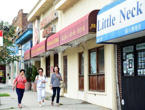 据报道,纽约法拉盛店租飙涨、廉价停车位稀缺,使得商家纷往长岛方向开店。尤其皇后区小颈(Little Neck)餐饮业异军突起,当地亚裔倍增,吸引亚洲餐馆聚集,在北方大道发展出一条美食街。