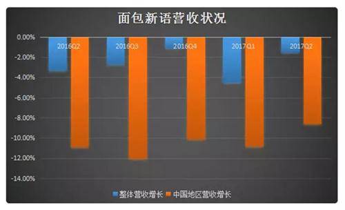 根据面包新语的Q2财报,公司整体的营收同比下降了1.5%。在中国大陆地区营收同比下降达到了8.6%,远高于整体下滑的幅度。回看近几个季度,面包新语在中国的营收都处于困难期。