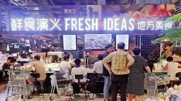 超市大卖场不仅可以购买食材,还可以实现聚散的社交场所,鲜食主义相当于大卖场里的自营主力店、国际美食、地方美食、海鲜体验馆、街头小吃、果饮水吧等五个板块,甚至还提供牛排、海鲜、烧烤、特色快餐等堂食餐饮,面积将近1000平米。
