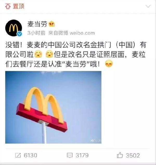 不过,麦当劳官方微博回应称,改名只是证照层面,品牌名字不变,还呼吁麦粒们去餐厅要认准“麦当劳”。