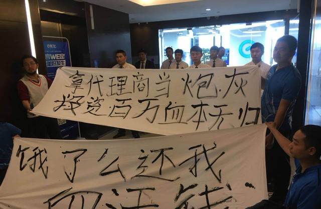 10月31日下午,知情人士的独家爆料,在饿了么上海总部聚集了13家地级市独家代理商,他们举着用床单做成的横幅,在饿了么总部楼下维权。横幅上写道,“饿了么还我血汗钱”,“拿代理商当炮灰,投资百万血本无归”。