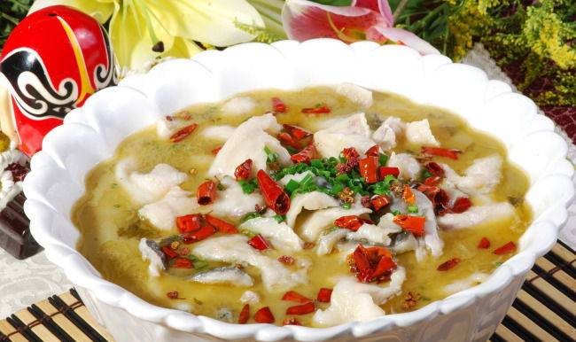这道酸菜水煮鱼,用无叶酸菜和酸萝卜调味,汤底尤为浓厚鲜美,鱼片也变得口味丰盈。