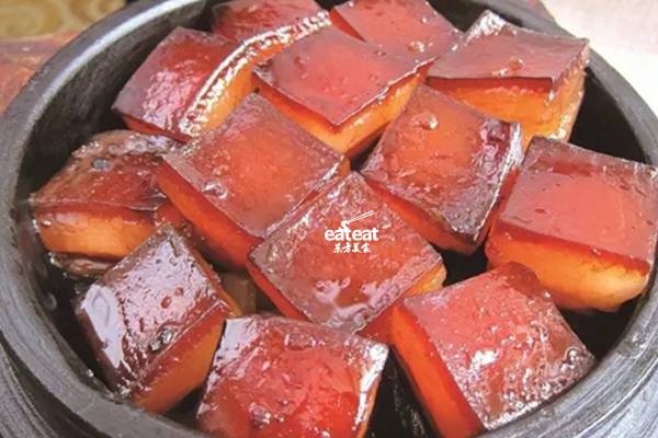不少师傅做出的东坡肉卖相不好,颜色过黑或不够光亮,这是因为没有掌握东坡肉的上色诀窍。煮东坡肉时有两点需要注意,第一是煮制中途要翻面,第二是小火焖烧3小时。
