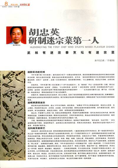 2007年第9期《烹饪艺术家》封面人物并报道其解析经典杭帮菜的文章