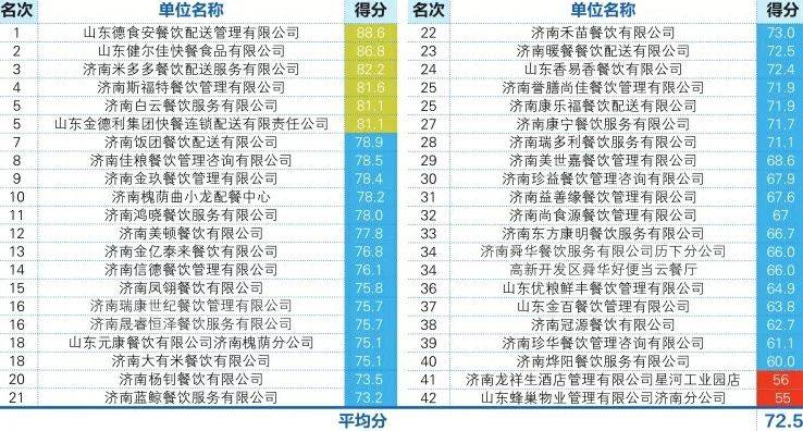 5日,济南市食药监局最新公布:2017年度济南市集体用餐配送单位食品安全管理公开评价情况通报,济南42家集体用餐配送单位评价结果出炉: