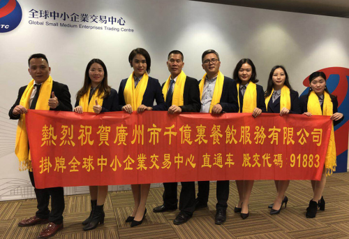 2018年1月8日,伴随着响亮的敲锣声,广州市千亿里餐饮服务有限公司,简称“千亿里餐饮”,在全球中小企业交易中心即全球股交所(香港)正式挂牌上市,全球股交代码代码91883,成为公司发展史上又一重要的里程碑。