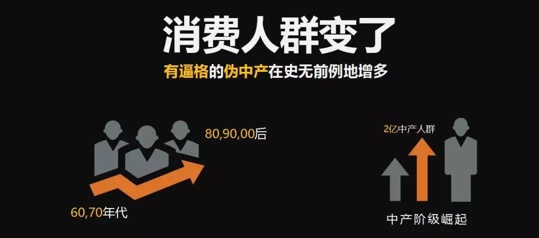 追求个性的8090,逐渐成为消费的主流。餐企不能迎合主流消费者的消费习惯和消费属性,将被市场冷落!同时我们也发现中产阶级崛起,据统计有2亿伪中产阶级崛起。伪中产是什么情况?伪的原因是因为他们实际消费水平往往并不高,却要求在性价比足够好的前提下消费一些有特色高逼格的产品。