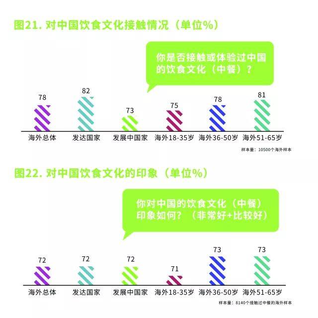 刘广伟先生指出中餐一直以传播最广、体验美好、产品丰富、生命力强等几大特点在中国传统文化中占据着重要地位,并且在中国文化在海外的传播中最具影响力和优势,这一观点也在上述调查中得以印证。