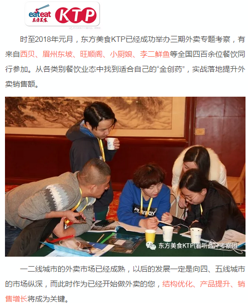 3月,KTP将开启第四期的外卖深度经验交流,邀请正餐、快餐、互联网餐饮的王牌企业,分享运营之道。