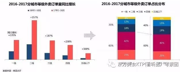《报告》指出,外卖在未来的发展方向将延伸进三四线城市。未来随着城市用户习惯的养成,这部分城市的市场将有大发展。