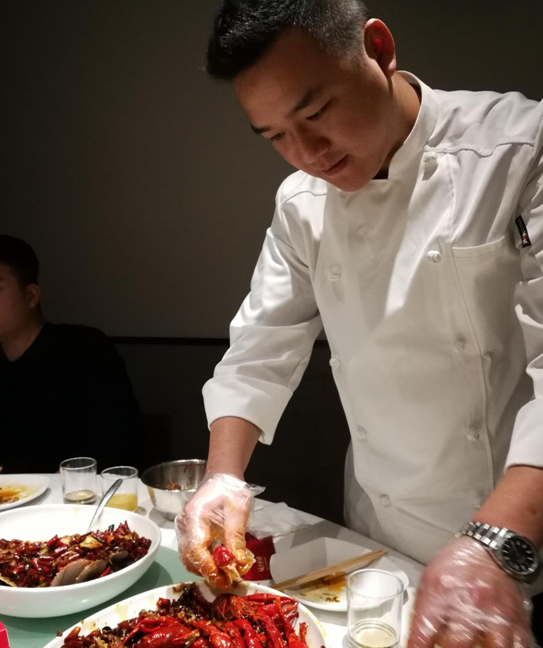 厨师长居然都过来帮忙了!这么有颜值的小哥站在我们面前剥虾,真的是……色香味俱全啊,哈哈哈哈。他一边剥虾,一边向我们讲解了下胡大的龙虾历史,吃法和特色。听得我们很入神。不得不说,这次在胡大的体验感超好。