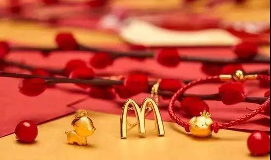 今年2月初,麦当劳就坐实了自己“金拱门”的称号,和周大福一起推出中国味的周边,做了一款吊坠。