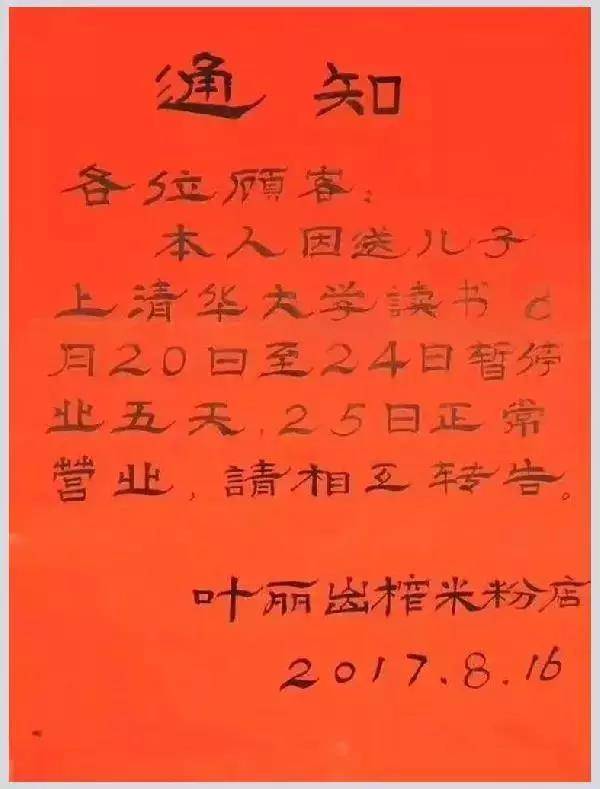 除了相亲型的歇业通知,还有晒娃型的。当然,这家店铺的晒娃形式可以说很高级了,送孩子去清华大学是多少家长的梦想。能送孩子上清华,那么这家饭店也一定不简单。