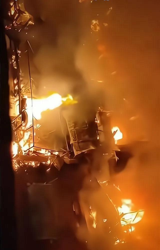 现场疑似是小吃摊煤气罐爆炸引发。