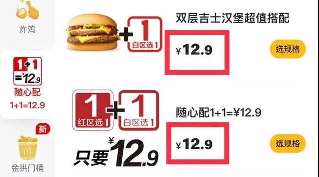 最近“麦当劳1+1随心选套餐”涨了0.9元!感觉涨得不多,但要知道这个产品涨价前是12元。不止“麦当劳1+1随心选套餐”,连早餐、部分系列套餐,也升价了!一对麦辣鸡翅12元升到13元!早餐系列6块变成6.6元,原来咖啡可以换牛奶,现在也得加钱!