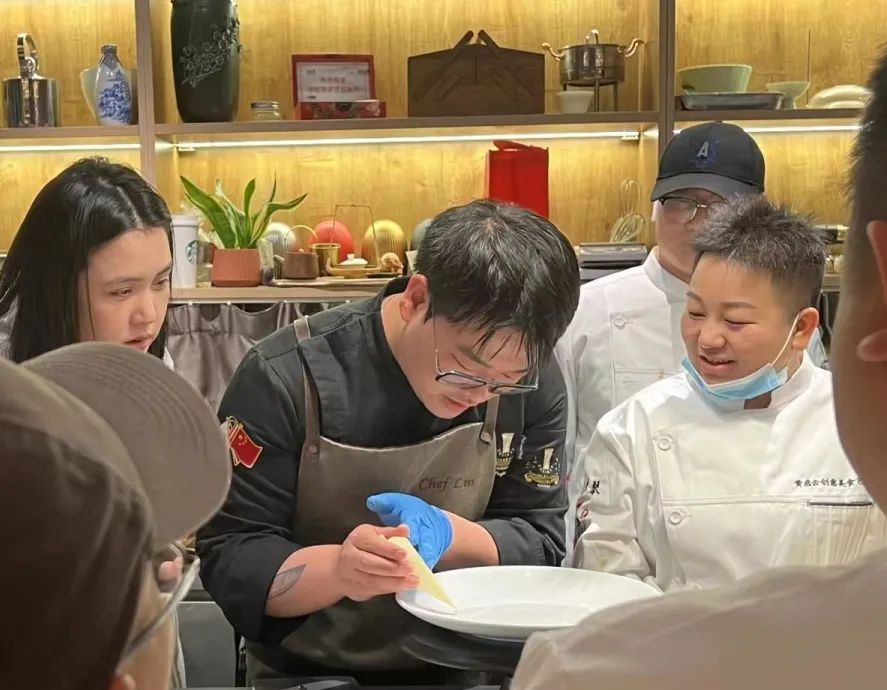 “后来,我当了几年的粤厨,忽然发现还有很多值得学习的东西,于是,我开始投资自己参加各种培训班,这其间我学习了英式翻糖、法式甜品、分子料理、中西融合料理等。在学习的过程中,我又接触到了我的第二任恩师,当时皇品集团来到中国大陆的第一任总厨,他是专门做中西融合料理的,在师傅的启发下,我对中西融合料理有了进一步的认识和了解。”