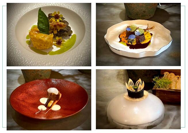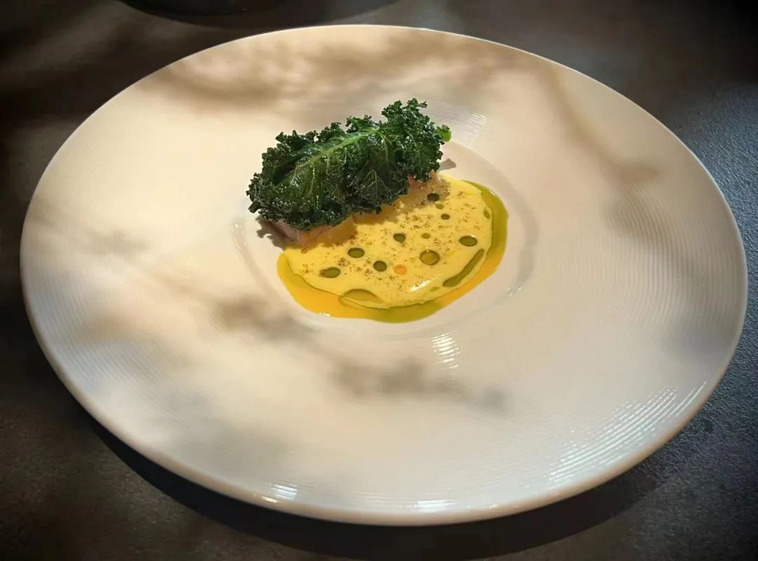 “在出品方面,为保障每一道菜品的独特性、食材的本源性、审美感,我会特别关注食材经过烹饪加工后所呈现的状态,比如虾青素遇高温会变红,虾的蛋白质会不会因为高温而被损坏等,这就要求我对食材一定要熟悉;其次,我比较追求食材本身的味道,以及菜品呈现出来的多样性。比如:我们看花朵的时候会被吸引的原因在于它本身的色彩,做菜也是一样,颜色多了会带来眼部的疲劳。所以,在菜品的呈现上,我们会尊崇不超过4个颜色来搭配,将食物本身的颜色和食材与食材之间的颜色搭配到一块;将食材与器皿,器皿与器皿之间的重叠融合到一起,才有了这样精致的呈现。而且,为了保证菜品的出品质量,我们每次换菜单前,都会有为期15-20天的培训,保证出品后的效果都是一样的。”