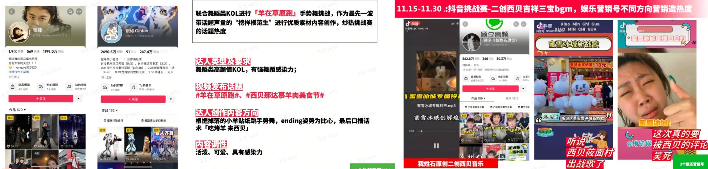 西贝莜面村此次与抖音平台深度联动"抖音心动大牌日"IP,通过布局短视频达人投稿+达人直播矩阵+制造热点话题+主题精品店+品牌自播+明星直播触达等组合型经营动作打造“品牌活动+平台IP” 的创新营销模式,助力品牌在抖音上进行品效合一的营销玩法,深度覆盖品牌目标客群,提升客群消费力,并推出西贝那达慕羊肉美食节特色菜,突出产品和文化体验,借助差异化营销实现消费者心智植入,实现线上线下内容氛围共造,助力品牌声量破圈。