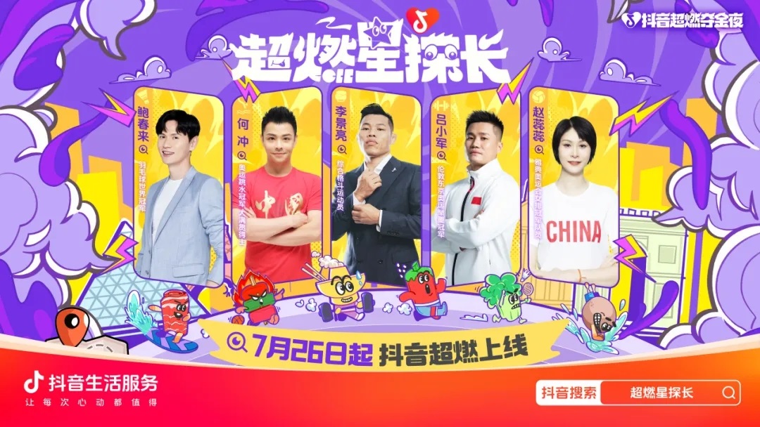 8月12日,由抖音生活服务「抖音超燃夺金夜」项目发起的系列vlog节目「超燃星探长」正式收官,总曝光超7.5亿次,收获了众多用户的喜爱与好评。节目由5位体育明星@鲍春来 、@何冲 、@李景亮 、@吕小军 、@赵蕊蕊 ,携手6位美食达人@安秋金 、@刘雨鑫Jason 、@TC在中国 、@二百者也 、@夏叔厨房 、@大琦 及素人粉丝们组成“饭搭子”,通过15期的节目,从竞技比赛、美食探店、体育精神等多个维度进行交流探讨和互动分享,用最真实的赛后故事和诱人到溢出屏幕的美食,燃爆四年一度的体育盛宴。