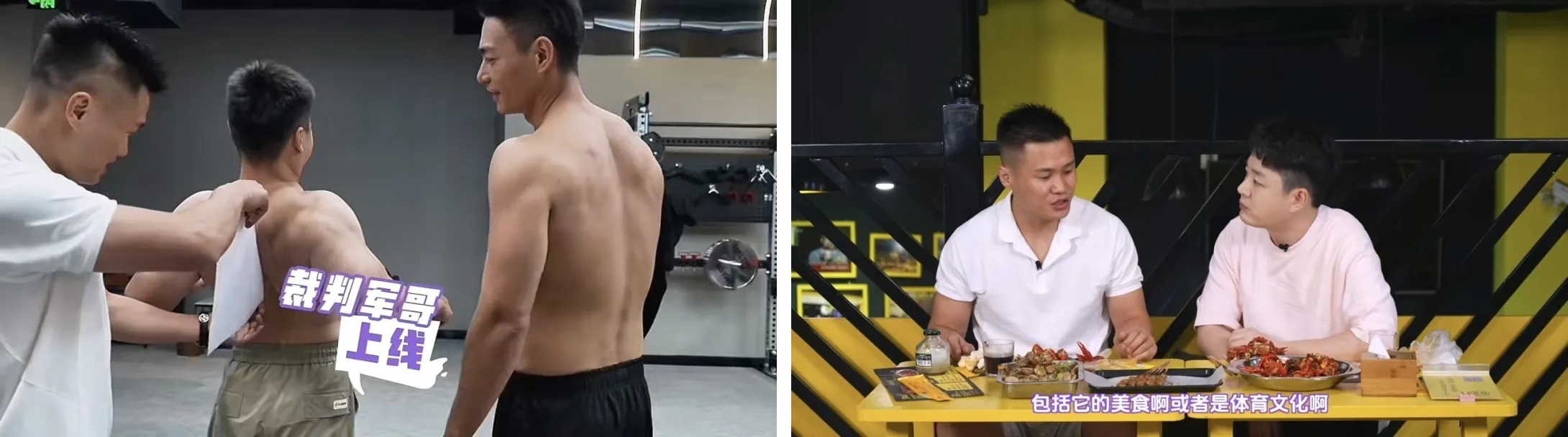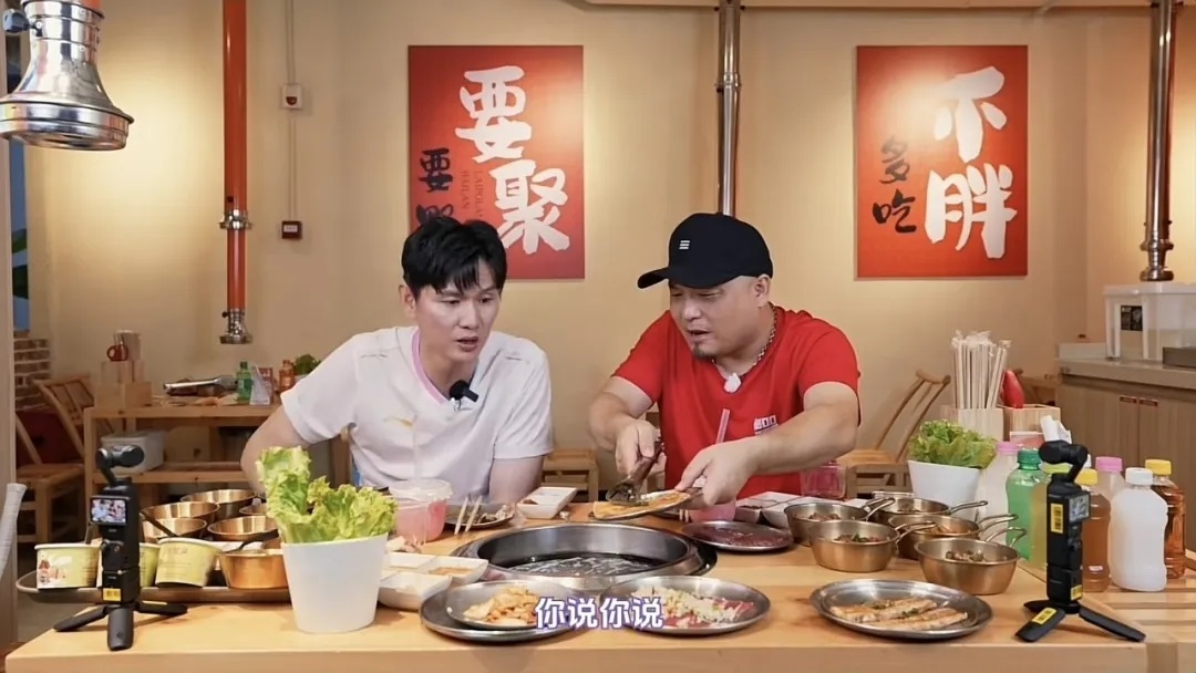 同样引人关注的热点#鲍春来闯入美食圈,羽毛球冠军@鲍春来 携手定额盲盒探店达人@二百者也 一起边吃烤肉边PK,将美食形容词发挥到极致。