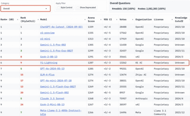 国内模型首度超越 GPT-4o!零一万物新旗舰模型 Yi-Lightning 排名世界第六、中国第一,致力以顶尖模型赋能千行百业