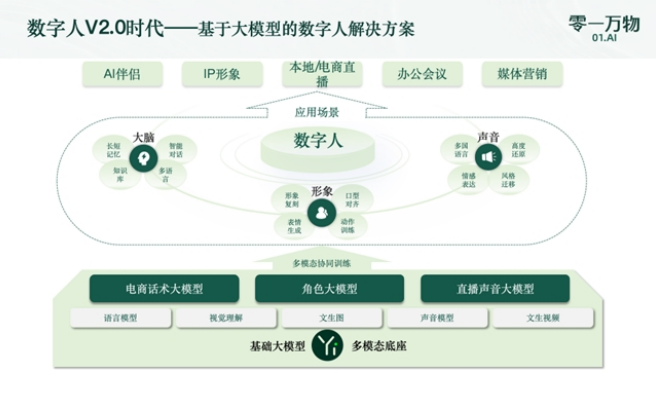 得益于零一万物在文本理解、多模态方面的模型能力,搭载角色大模型与直播声音大模型的零一万物 AI 2.0 数字人在形象更为逼真、声音也更贴合垂直场景的需求。