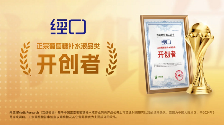 2024年10月,经口获全球新经济产业第三方数据挖掘和分析机构iiMedia Research(艾媒咨询)授予的“正宗葡萄糖补水液品类开创者”市场地位确认。