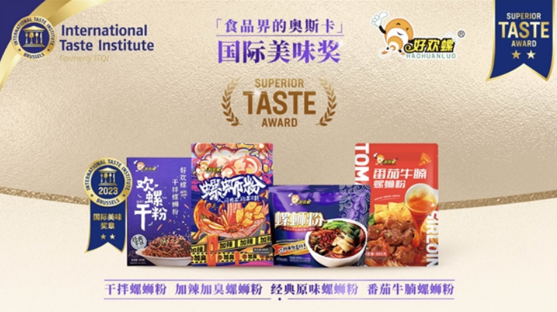 近年来,好欢螺不断推陈出新,以创新之力续写中华美食传奇。陆续研发出的多款创新口味,充分展现了好欢螺在传承中创新、在创新中发展的理念。其中四大明星产品(经典原味螺蛳粉、加辣加臭螺蛳粉、番茄牛腩螺蛳粉、干拌螺蛳粉)全部斩获 “食品界的奥斯卡”—— 国际美味奖,这是国际顶级专业美食评委对中华美食的高度赞誉。2024年,好欢螺从4000+全球参奖案例中脱颖而出,获得有 “食品界诺贝尔” 之称的 “iSEE全球食品创新奖” 年度最具价值创新品牌,主销产品更是荣获福布斯中国2024大消费年度影响力产品。这些荣誉,是好欢螺实力的象征,更是中华美食文化在国际舞台上绽放光彩的生动体现。