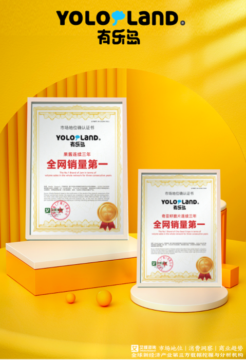 2025年1月,Yololand有乐岛获全球新经济产业第三方数据挖掘和分析机构iiMedia Research(艾媒咨询)授予的“果酱连续三年全网销量第一”“奇亚籽脆片连续三年全网销量第一”双项市场地位确认。