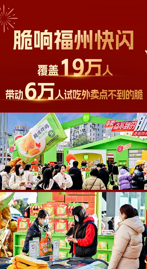 自去年起圣农举办的CNY活动就首战告捷,达到总曝光量高达4.46亿次,加上线下地推活动持续加码,使27万家庭被圣农成功圈粉。