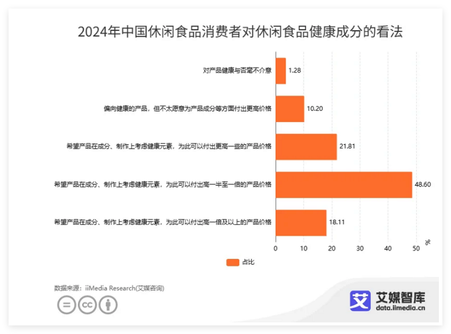 在消费升级的大背景下,消费者的健康意识不断增强,对食品的配料和品质愈发关注。iiMedia Research(艾媒咨询)调研数据显示,消费者在选择食品时食品健康已成为关键的购买决策指标。健康消费趋势日益显著,健康元素的产品备受青睐,为整个行业注入了新的增长动力,众多新锐品牌应运而生。