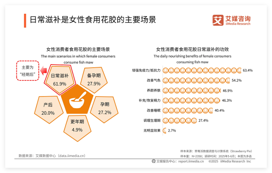 花胶消费场景正经历结构性迁移。调研数据显示,超过六成的女性消费者将花胶纳入日常滋补计划,其中经期后调理成为高频使用场景。